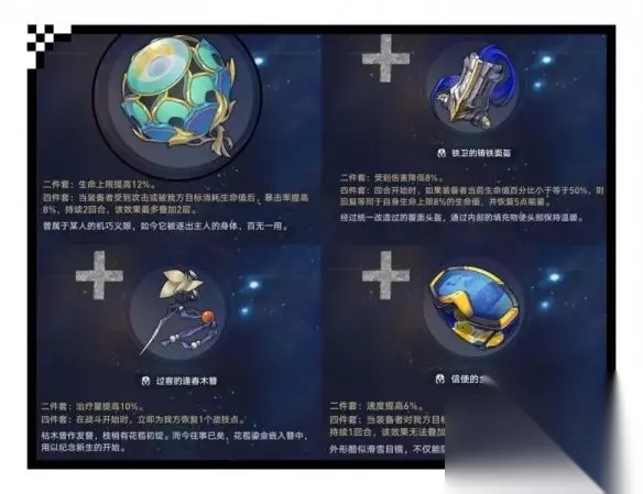 崩坏星穹铁道符玄培养攻略 1.遗器推荐 目前辅助流的符玄并没有太符合的四件套,因此外圈一般推荐用二加二。 二加二的范围就高了,二(宝命长存的莳者)生命、二(戍卫风雪的铁卫)承伤;二生命二(骇域漫游的信使)速度;二生命二(云无留迹的过客)治疗都是可以的。(生命躯干、速度鞋)