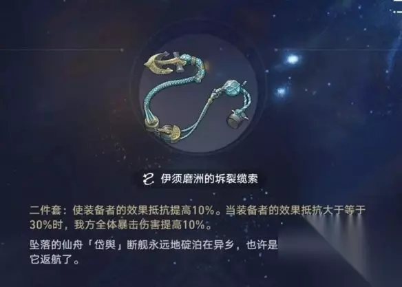 内圈推荐:内圈可以选择不老者的仙舟二件套或者 折断的龙骨 二件套 (注意龙骨套需要有百分之三十以上的效果抵抗才能触发,行迹提供的效果抵抗为6%+4%=10%,龙骨提供10%效果抵抗,因此符玄遗器副词条有10%效果抵抗即可吃到套装效果,要是你带的黑塔武器记忆的质料,叠影二直接被动再提供10%效果抵抗,等于副词条不需要效果抵抗就可以吃到)