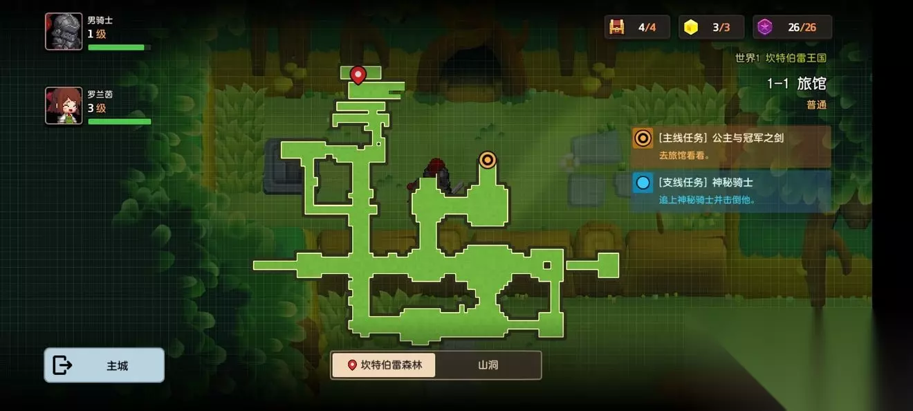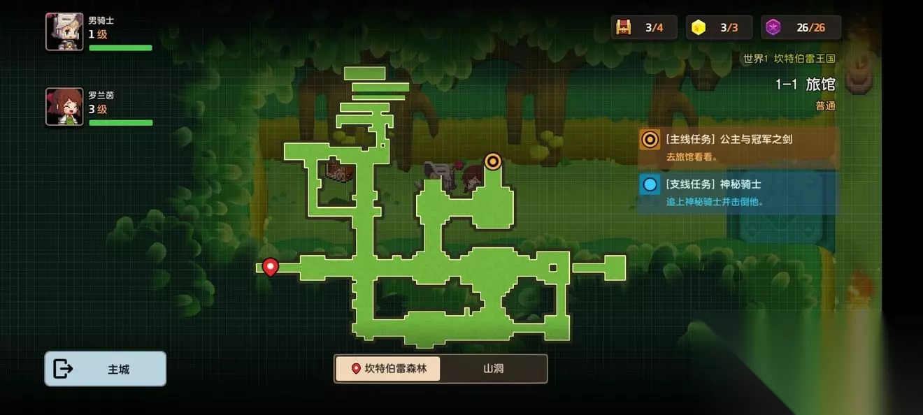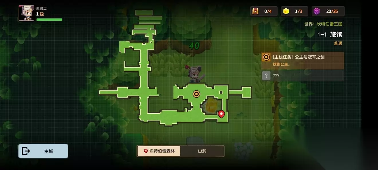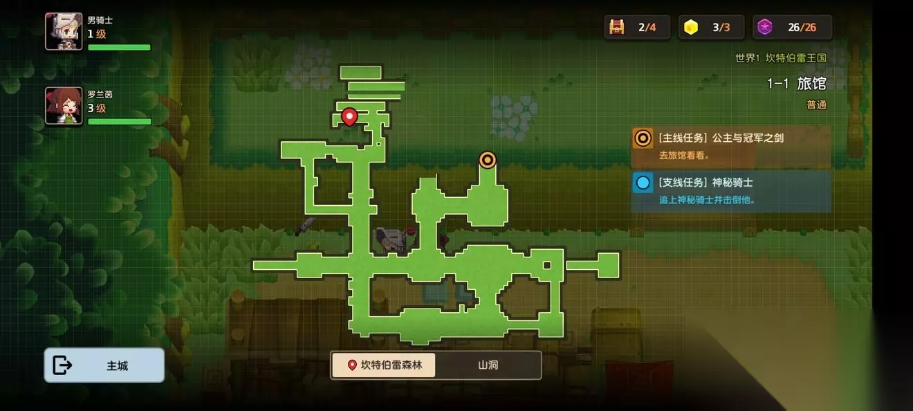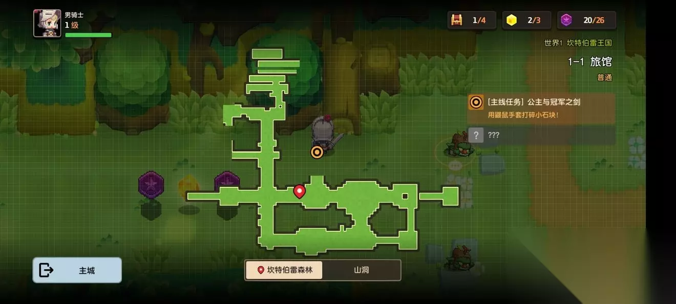 坎公骑冠剑第一章普通主线怎么完成?坎特伯雷公主与骑士唤醒冠军之剑的奇幻冒险游戏第一章有7个关卡,各位玩家们知道这些关卡的任务都是怎么完成的吗?各个关卡中的隐藏道具都在哪里呢?下面小编带来了坎公骑冠剑第一章普通全关卡攻略,一起来看看吧。 坎公骑冠剑第一章普通全关卡攻略 1-1旅馆 1-1地图