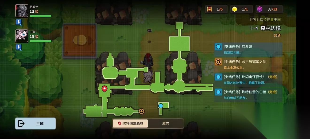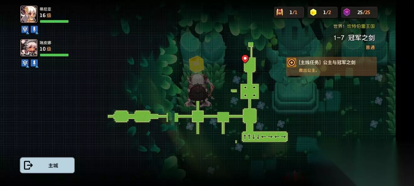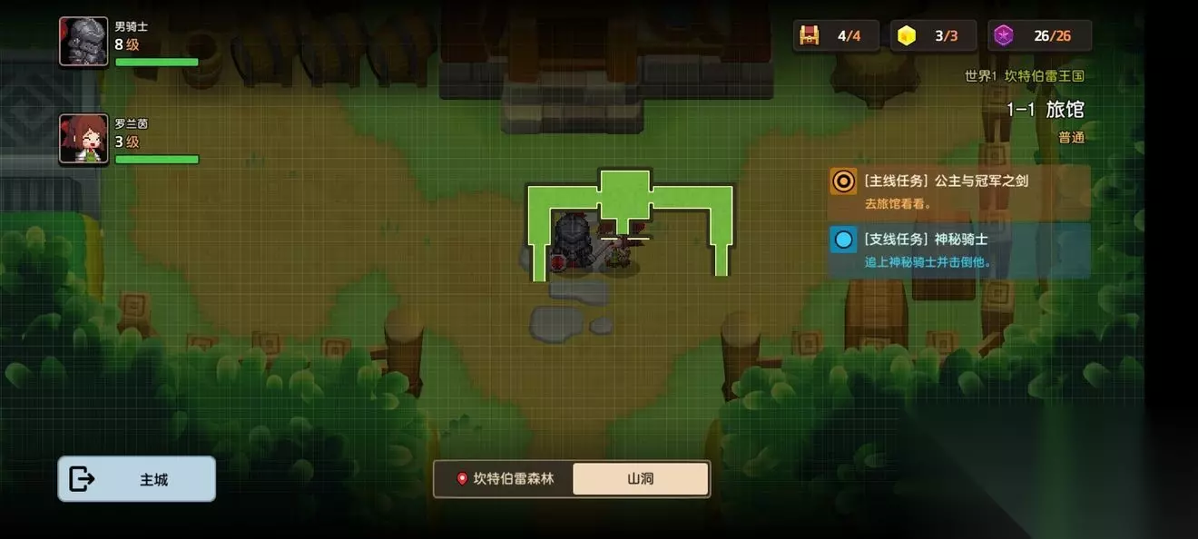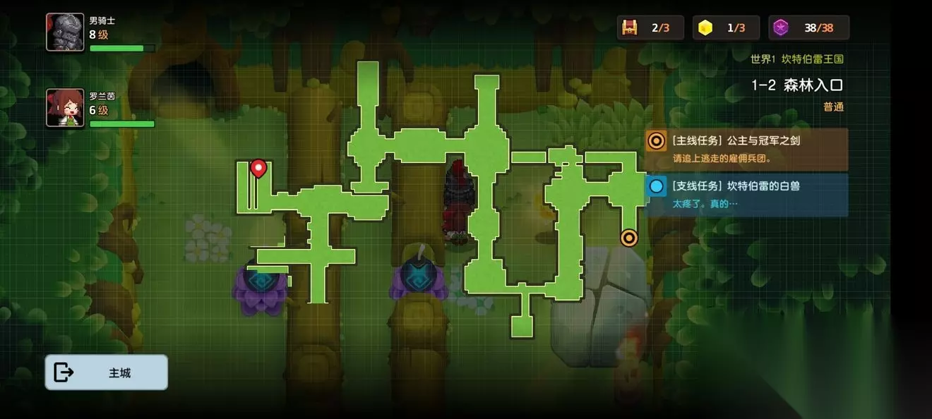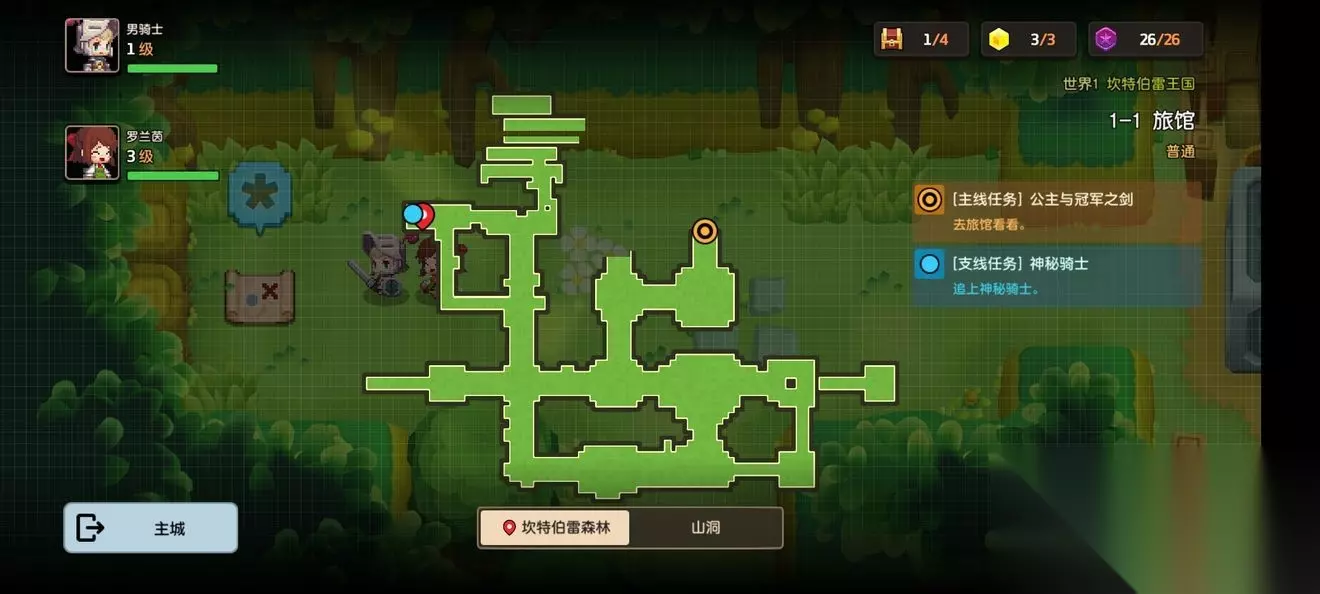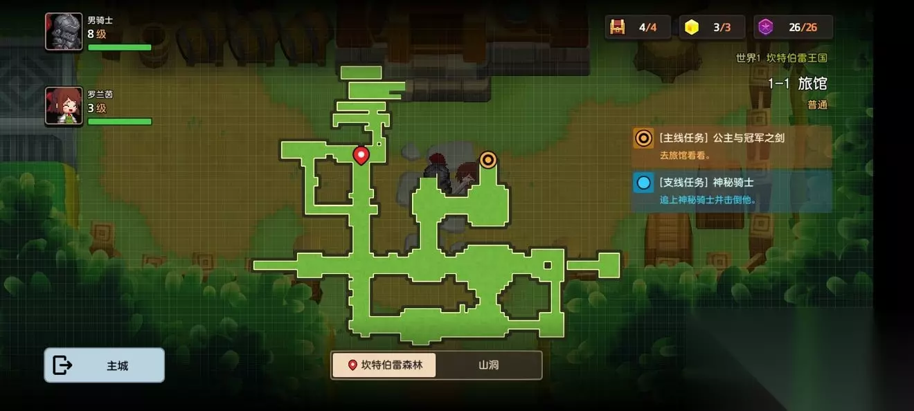 坎公骑冠剑第一章普通主线怎么完成?坎特伯雷公主与骑士唤醒冠军之剑的奇幻冒险游戏第一章有7个关卡,各位玩家们知道这些关卡的任务都是怎么完成的吗?各个关卡中的隐藏道具都在哪里呢?下面小编带来了坎公骑冠剑第一章普通全关卡攻略,一起来看看吧。 坎公骑冠剑第一章普通全关卡攻略 1-1旅馆 1-1地图