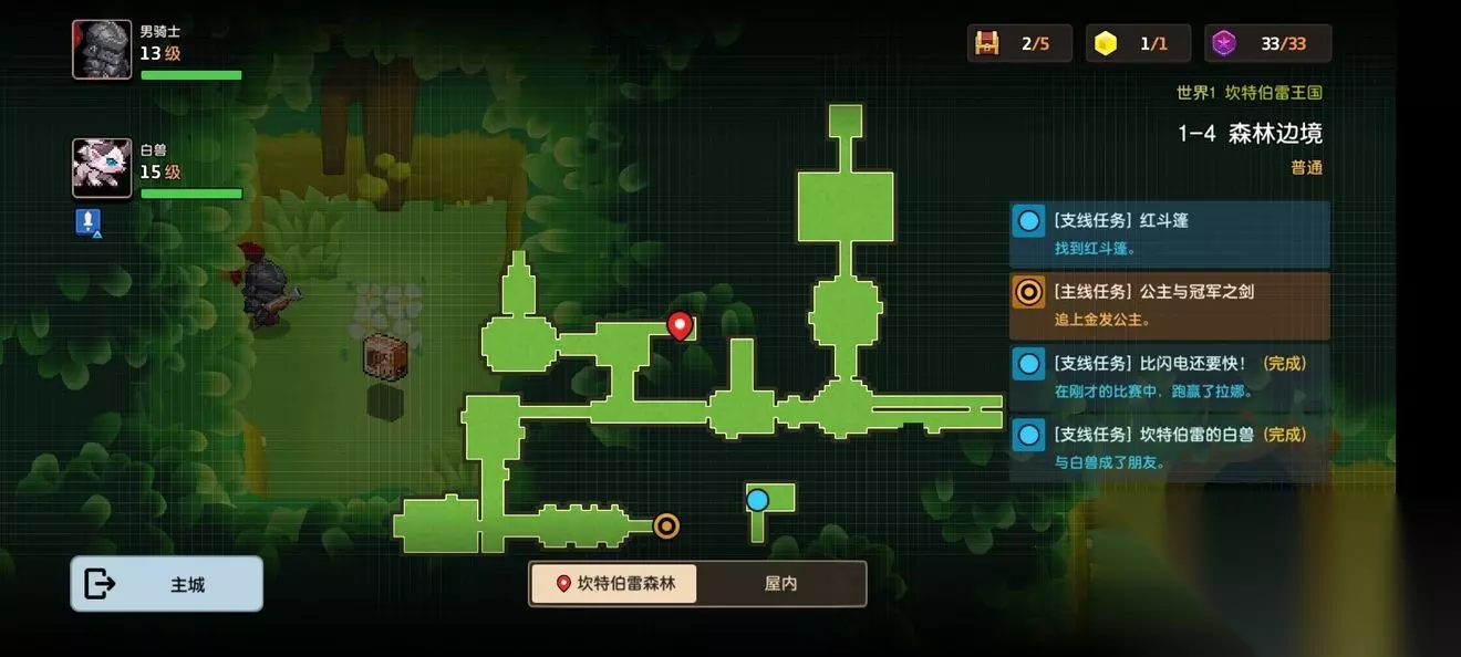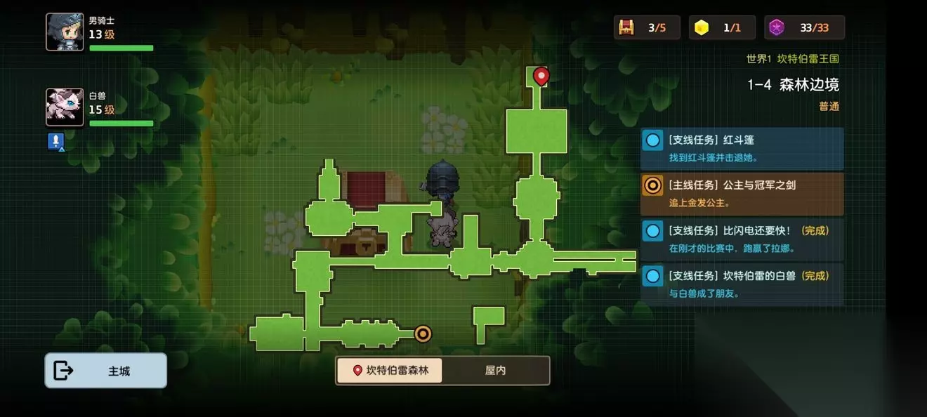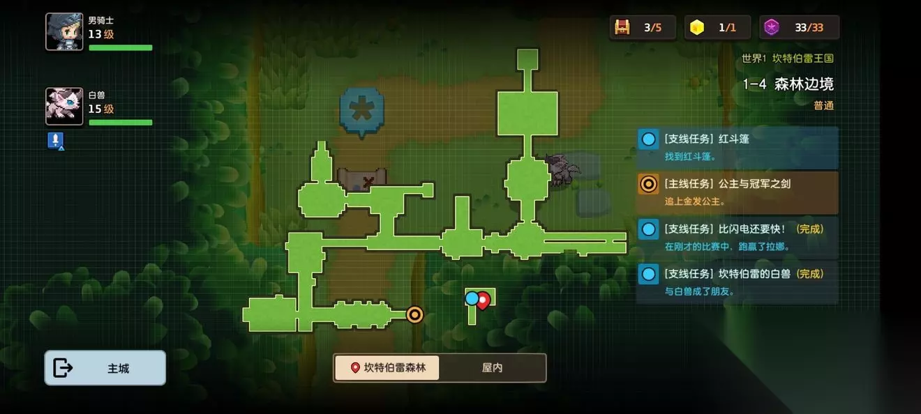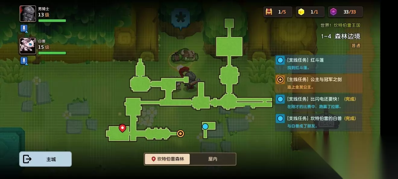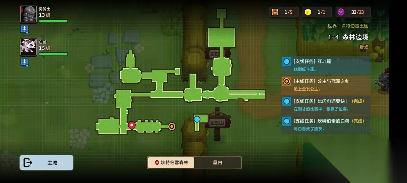 坎公骑冠剑第一章普通主线怎么完成?坎特伯雷公主与骑士唤醒冠军之剑的奇幻冒险游戏第一章有7个关卡,各位玩家们知道这些关卡的任务都是怎么完成的吗?各个关卡中的隐藏道具都在哪里呢?下面小编带来了坎公骑冠剑第一章普通全关卡攻略,一起来看看吧。 坎公骑冠剑第一章普通全关卡攻略 1-1旅馆 1-1地图