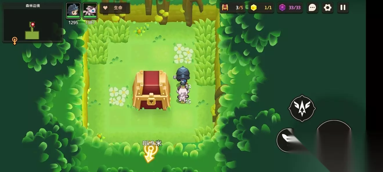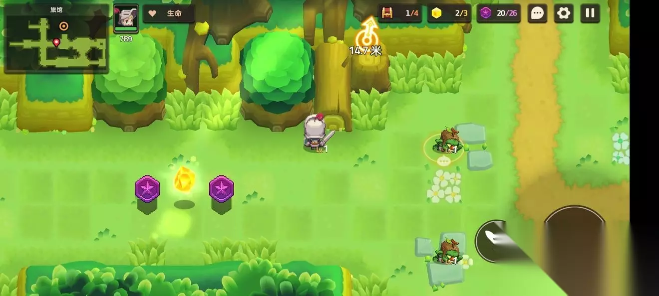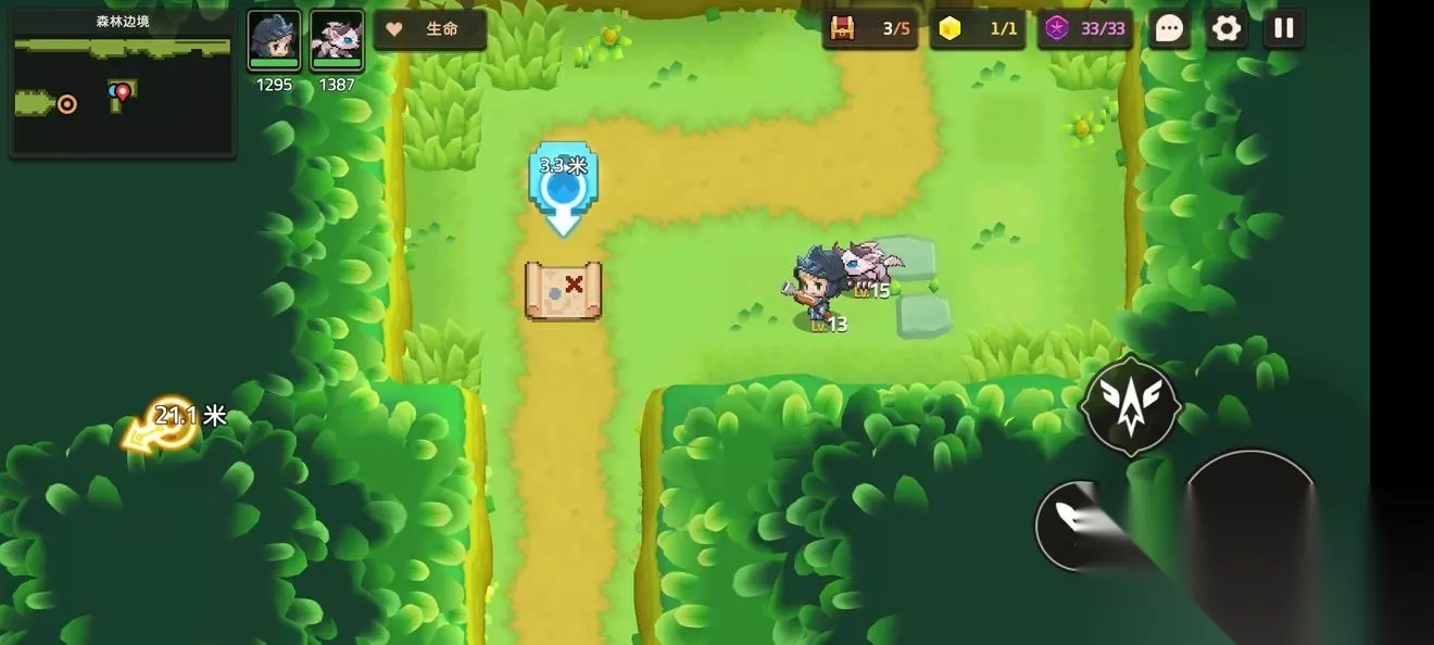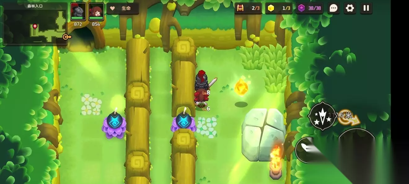 这里一个,跟着蝴蝶走就能进来 这个支线比较特殊需要到第五章才能完成,所以第一章差任务的就是这个了 跟着主线有个寻找白兽支线 本关无隐藏紫币 (提示:头上着火点NPC可以点燃火盆) 1-3森林深处 1-3地图