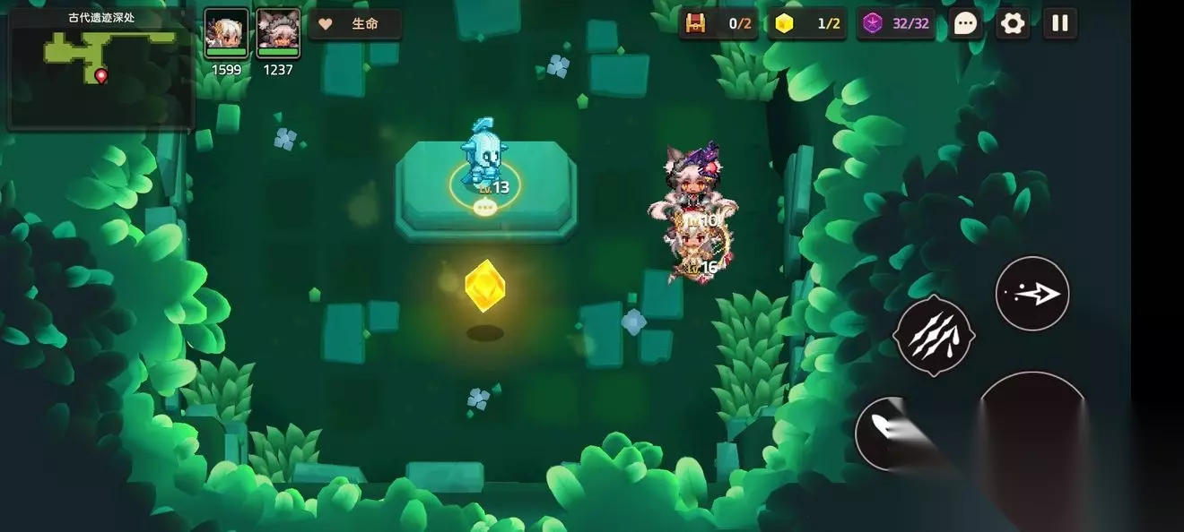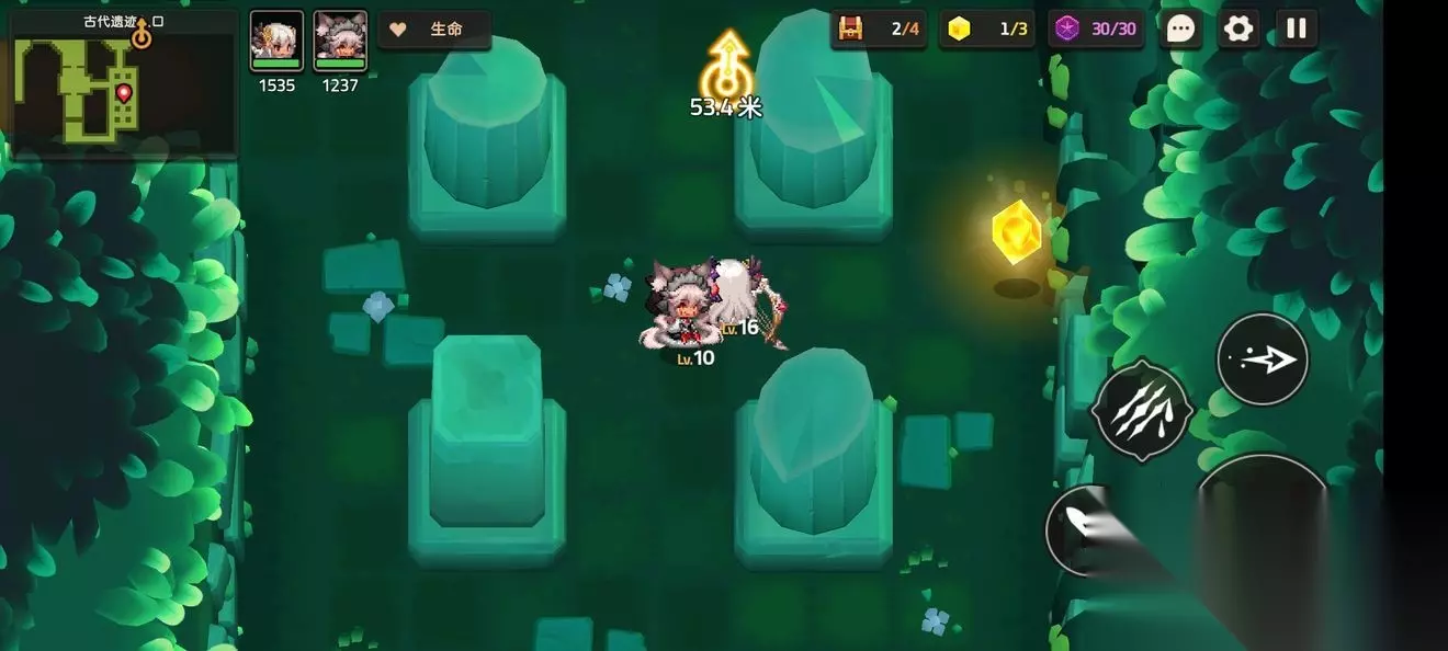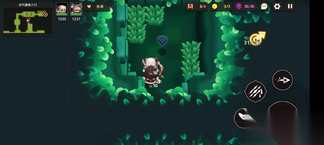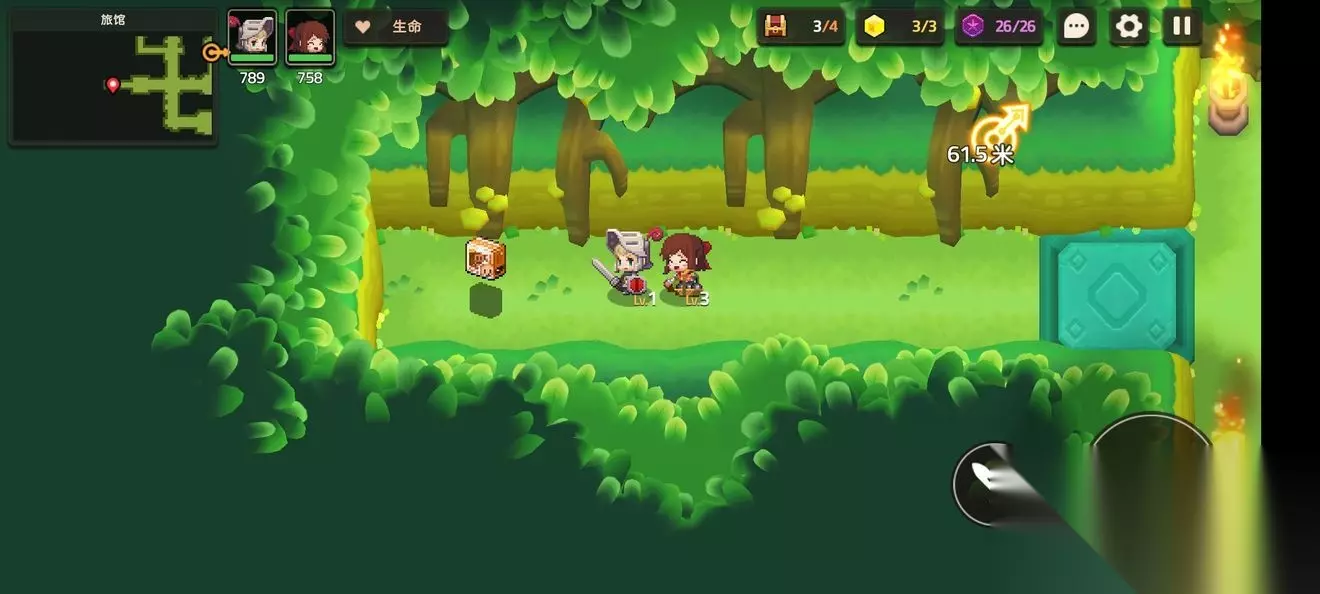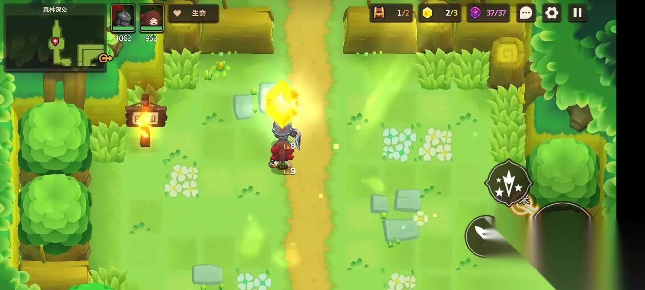 这里一个,跟着蝴蝶走就能进来 这个支线比较特殊需要到第五章才能完成,所以第一章差任务的就是这个了 跟着主线有个寻找白兽支线 本关无隐藏紫币 (提示:头上着火点NPC可以点燃火盆) 1-3森林深处 1-3地图