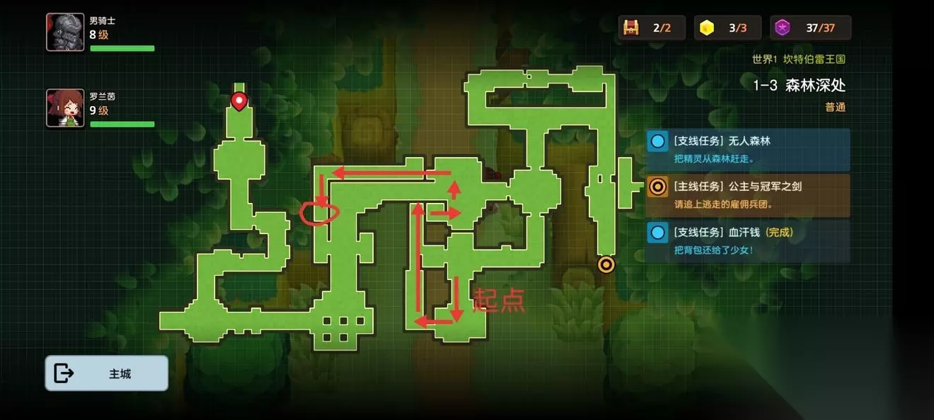 上面第二个黄碎片位置 另外吸血鬼少女任务把她带到第一个宝物位置用阳光照她就行了 1-7冠军之剑 1-7地图(正常迷宫走法跟着地上小公主手帕走就行)