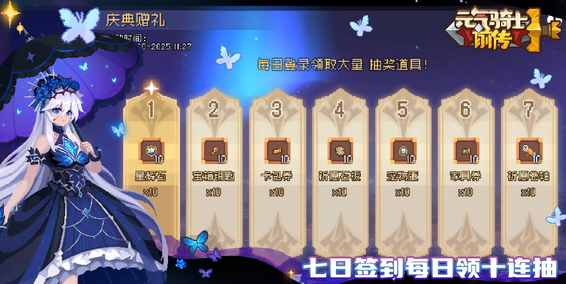 注:补签仅能补签前一天的签到,七日签到活动将于2025年11月27日结束,小骑士们可要注意啦。