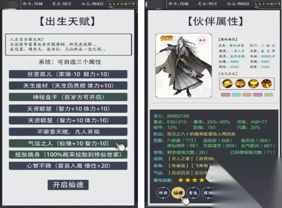 无论是以文字修仙为主题,还是以其他类型为主的,基本上以文字类型为主的,都有着独特的玩法。当你置身于介绍的这款修仙题材的游戏以后,无论是选择里面的修仙职业,或者是整个修仙的过程中,都能享受极高的自由度。需要仔细观察,所显示的文字内容到底是什么。开局的时候也能自定义名字和体质等,在飞升的过程中更顺利。 高速下载 普通下载 优先233乐园APP下载 3、《凡人修仙》