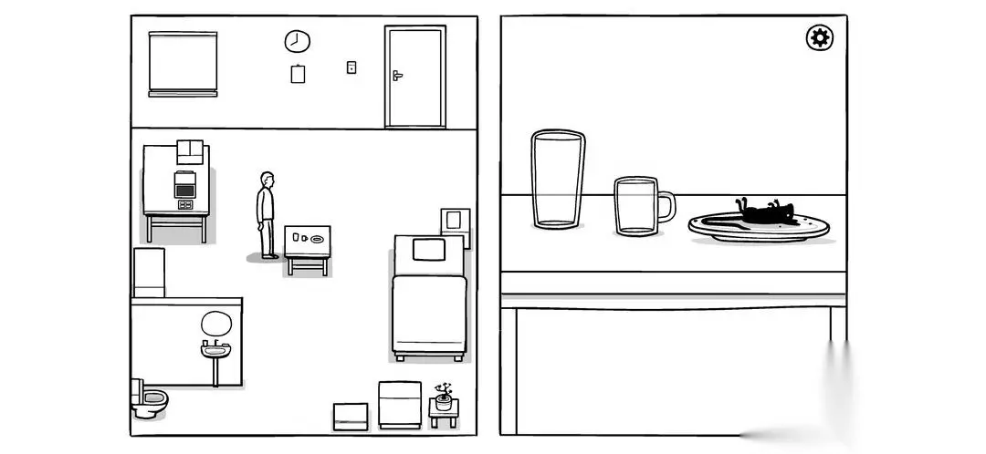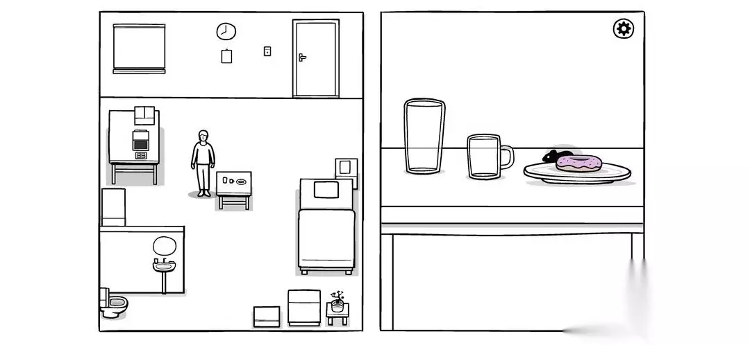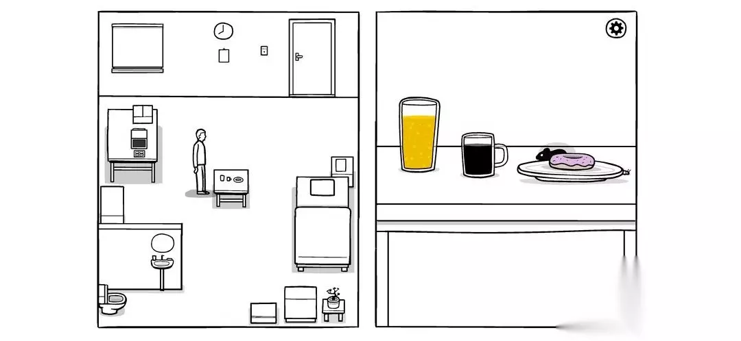然后吃早饭,水喝掉,发现个耗子偷吃甜甜圈,追着揍,直到揍趴下(盘子,水池,电脑,柜子,盘子) 另外,耗子最后在盘子里是需要鞭尸来刷新时间,不然无法触发查房