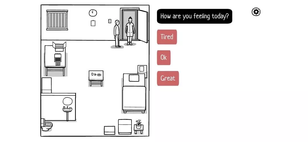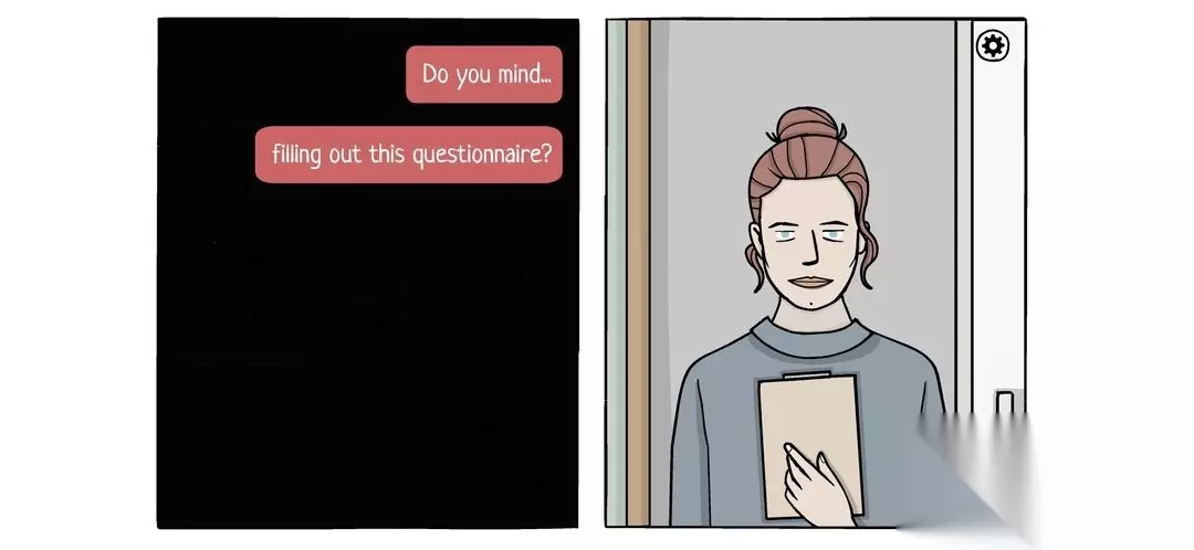 门铃对讲机响了,先按听筒,再开锁,打开门看见医生,收下送的植物,并填写调查问卷(随便填,问卷不影响剧情)最后收下名片,梦醒。