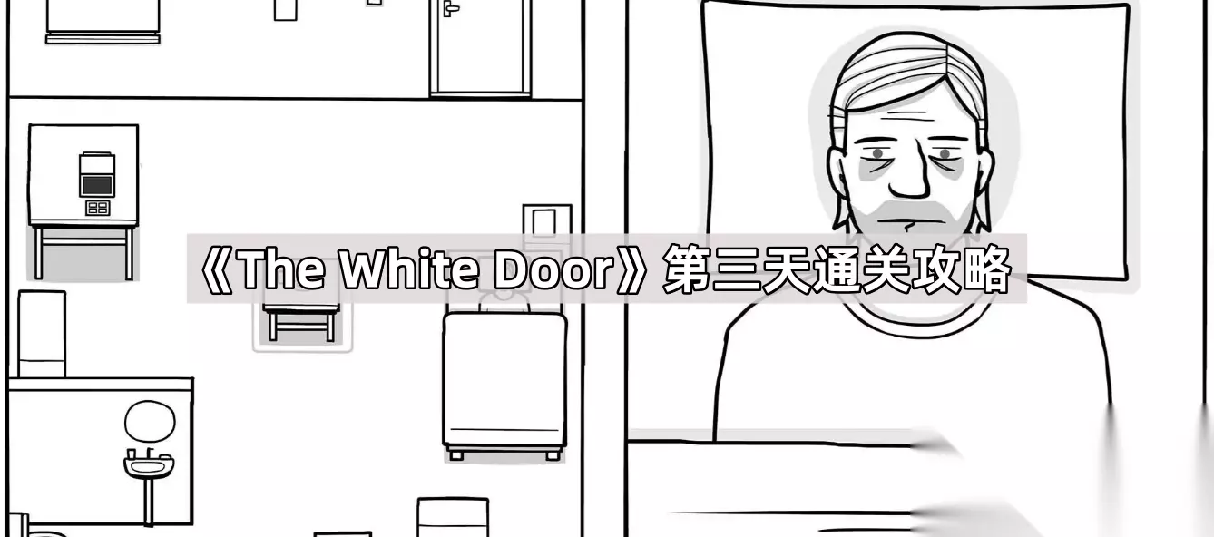 【《The White Door》全流程攻略】 《The White Door》第三天通关攻略 【第三天】 现实 起床,发现房间多了个花盆,上面有个虫子,在多个地方寻找并点击(花盆,电脑键盘右上角,盘子右边,花盆),最后成为扑棱蛾子,点击飞走,完成成就。(期间可以顺便洗个漱,毛巾换成剃须刀,洗漱和吃饭顺序不发生冲突,洗完后吃饭时间也继续走)
