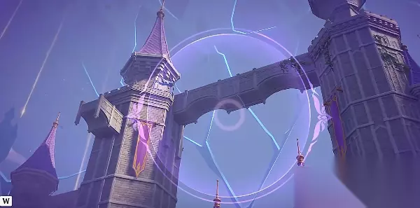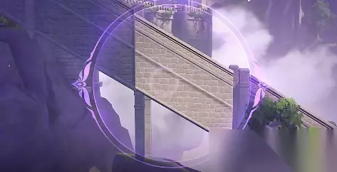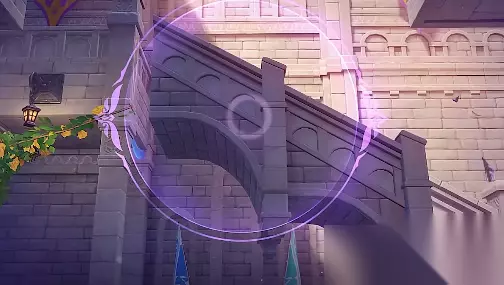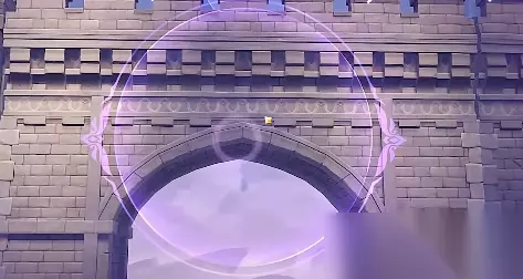 3、修复桥梁以后,我们只需要跟随指引进入城堡,在门口还有一个【幽邃鸦眼】,将面前的桥梁修复称下图样式。