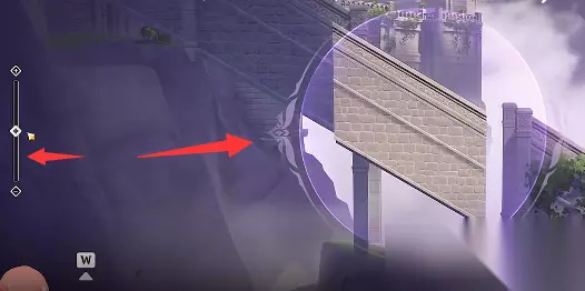 5、然后再次使用【幽邃鸦眼】,将角度向上拉,就能看到还有一处需要修复的桥梁。(修复完毕以后乘坐电梯返回二层)