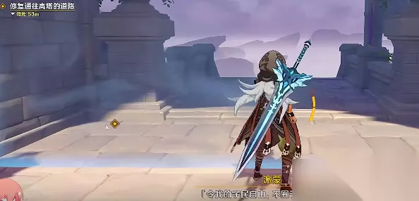 9、之后我们需要完成任务【修复通往高塔的道路】,来到对面区域需要玩家仙完成交互,念出结界的口令。