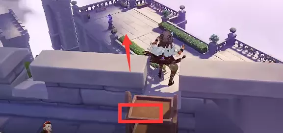 6、将第二层的敌人消灭以后,我们站在下图的木椅上,超箭头方向飞过去。