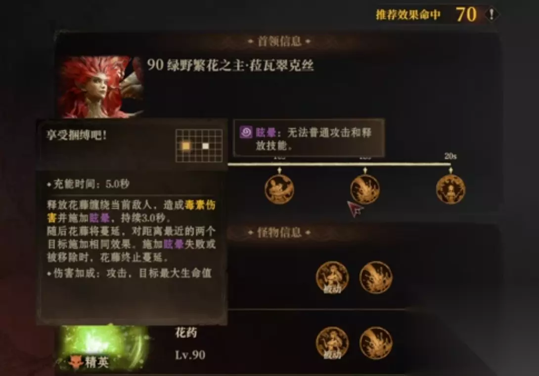 由于妖精迷宫是关卡制的这套阵容可以渡过前期,但在遇到高难关卡时需要更换阵容,比方说第60关,这关boss会给敌人施加持续掉血的负面buff,二技能有概率对前排英雄眩晕,大招还能移除自身所有的减益并对全体释放毒伤。