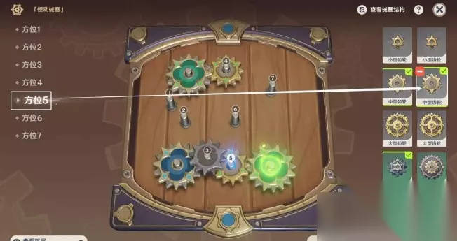 方位五:中型齿轮,下层。