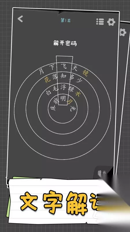 在《汉字的密室》里,你会找到各种散落的偏旁部首。组合出的汉字必须符合密室中隐藏的规则,成功组合后,对应的机关就会被触发,开启新的区域。密室里会有许多看似无关的文字,你需要仔细分析每个字的含义,找出它们之间的逻辑联系,解开隐藏在其中的谜题。 高速下载 普通下载 优先233乐园APP下载 汉字的博大精深,在猜字谜中化作一场场思维的极限挑战!在这里,你可以是破解千年谜题的侦探,也能是创造新谜题的造物主。立即下载体验,在字谜的迷宫中披荆斩棘,收集限定称号。你的脑力风暴,此刻即刻引爆!