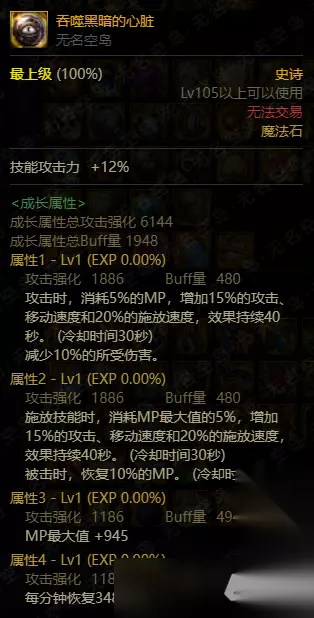 如果你的旅人只作为搬砖使用,也能佩戴“吞噬黑暗的心脏”右槽。改版后,它已经不会无限消耗角色的蓝量了。并且特效触发时,额外附赠10%的减伤效果。超高的三速加成,能让跑图更加顺畅。