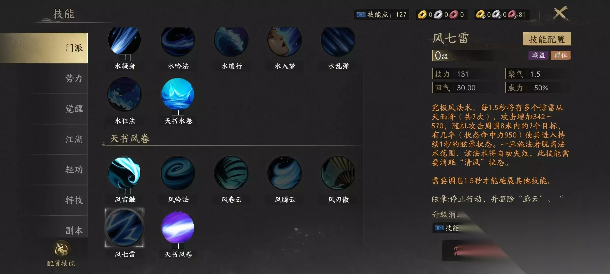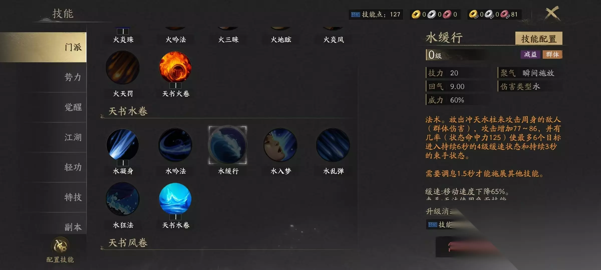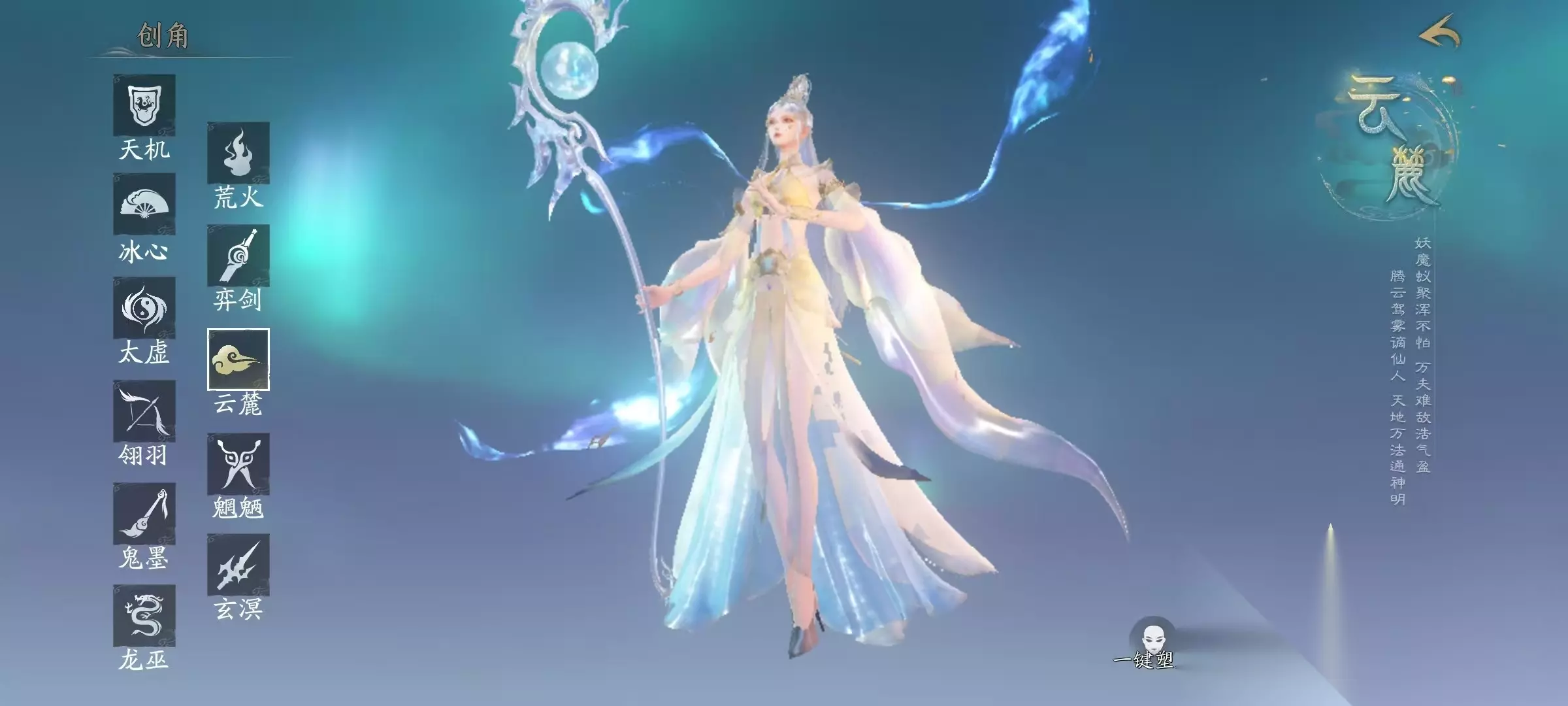 在天下万象中,云麓是属于纯远程系的法系门派,拥有多种丰富的元素技能,团队适配性比较强,这一点大家在选择之后点开技能就可以看到,它的主要技能是围绕着火、水、风这3系元素展开,每一系都有自身的侧重点。首先是火系,火系技能的特点是爆发伤害高,适合在副本中清理怪物。水系的特点是可以给目标带来迟钝、减速等各种不良状态,在pvp竞技过程中能够限制对手的走位和发挥。风系的特点是大范围控制强,属于群体控制类型,在团战中可以快速分割战场。