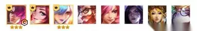 一、阵容搭配 阵容组成:猫咪、风女、卡莎、卡特、男枪、蕾欧娜、拉克丝、永恩