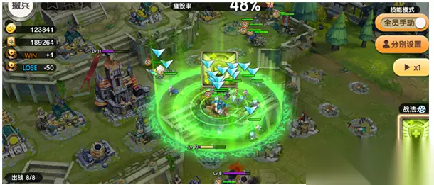 战法介绍 升级政厅可增加战法栏位数量(最大3个),以下是科技所中各种战法的介绍: (1)投石攻击 效果类型:远程 效果范围:4 向目标区域投出一块巨石,对范围内目标造成X点伤害。 (2)治疗结界 效果类型:治疗 效果范围:8 持续治疗目标区域内的所有己方单位,每两秒回复X点生命,持续一定时间。