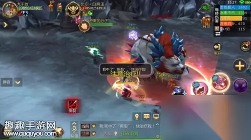 1号首领白熊王 首先需要注意的是白熊王释放的“恐怖重击”:白熊王会冲向随机玩家,对其造成最大生命值10%的伤害并且叠加“撕裂”这一持续性伤害的buff,受到恐怖重击的玩家角色头上会有箭头提示,奶妈看到后第一时间对其生命回复,将其生命恢复到90%以上,就能够直接移除玩家受到的“撕裂”这一持续性伤害的状态,这里奶妈的奶量很重要。