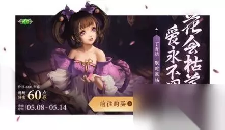 王者荣耀小乔丁香结返场价格是多少 小乔丁香结皮肤返场价格为60点券,也就是说玩家只需花费6元就能买到了,非常的划算。 王者荣耀小乔丁香结返场值得买吗 1、首先返场折扣价才6元,必须买啊,6元就能买到一个皮肤,非常的便宜,值得入手。 2、丁香结后续会进入积分夺宝奖池轮换,奖池代表皮肤不能100%抽到,抽奖价肯定比6元贵。 王者荣耀小乔丁香结什么时候返场 小乔丁香结皮肤将在5月8日返场,至5月14日24点结束,返场一个星期。