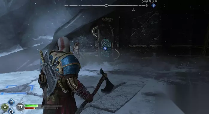 4、最后前往米德加尔特 - 失落的宝藏,先到达右上角的平台,将炸弹打爆,然后再将下面的圆盘向左拖动,之后通过圆盘爬到左上角的平台再来到右上角,将柱子推到圆盘处,再将圆盘向右转卡住石柱,之后拉动机关,使用斧子和符文箭将两个机关都定住,就可以进入房间了,之后只用关键物品-弗优特尔伦德宝库钥匙将最里面的门打开,就可以看到传说标示-爱的终结。