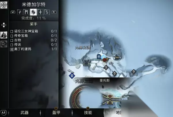 3、前往米德尔加特 - 废弃的哨站,如图所示位置可以看到传说标示 - 赫尔基之死