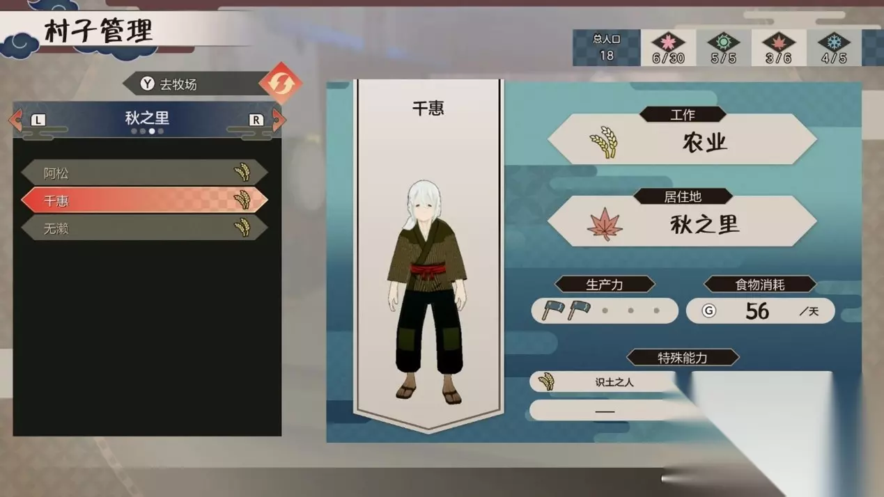 不同的村庄里因为存在着各自固有的地形、建筑,由此产生了不同的资源倾向,比如「夏之里」自带数量众多的店铺,这里就比较适合雇佣一些携带着商业天赋的村民,安排他们到店里做店员,从而赚取收益。 而「秋之里」则拥有面积十分广大的自定义地块,相当适合用来种植农作物,雇佣带农耕天赋的村民之后,他们就会自动在田里干活、收获以及贩卖,只要调整好不同职业的村民比例,算好每天的消耗和收益,完全可以半自动地实现村庄的经营,不会消耗玩家太多的精力。