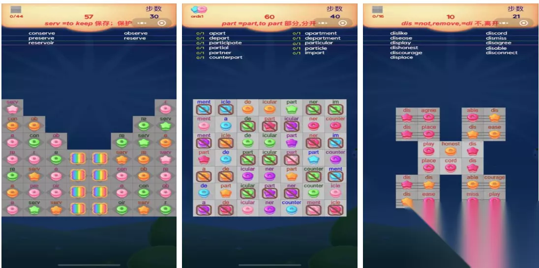 本作也是个有着多样算术题设定的简单休闲小游戏,休闲算数的游戏概念带来的体验新颖好玩,三维立体的算数符号和数字的加持辨识度也不错,更多的游戏模式也算得上是标新立异,各类数学知识和符号的注解也吸引了不少小学生,寓教于乐的全新算术题游戏概念会慢慢强化小朋友的智商。 高速下载 普通下载 优先233乐园APP下载 7、《甜蜜英语消消乐》