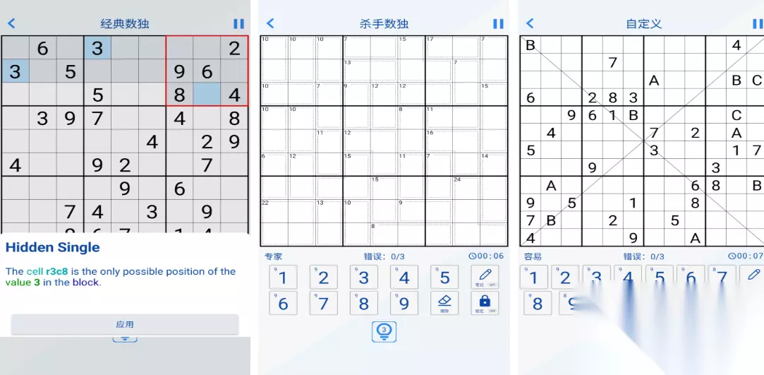 这款九宫格的数独解谜游戏采用了更为简单灵活的操作,在九宫格空白处填写各种数字既可完成任务,任务体系简单好做也有着超强的互动性,数字知识和快节奏的游戏模式结合更有意思,画面生动简单带来的操作体验更是简单上手,更多的数独方面的解谜任务期待着小朋友们自由学习。 高速下载 普通下载 优先233乐园APP下载 10、《数独大全》