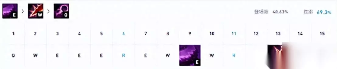 神话装备还是选择永霜居多,毕竟能够增加坦度,还带有一定的控制效果。后续选择炽天使来保证蓝量充足,中娅沙漏来提升容错率。 玩法介绍 前期使用普攻稳定补刀,看好敌人的位置Q技能远程打消耗,三级后E技能先手造成伤害并减速敌人,后续Q技能接W触发电刑的爆炸伤害打一套重新拉开距离,六级有大招加上电刑更容易秒脆皮,中期多进行游走,后期团战队友开团后找好位置进场,瞄准敌方C位英雄一套连招快速带走,后续调整位置配合队友打收割。