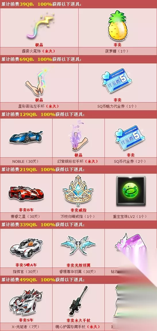 QQ飞车10月国庆狂欢100%送代金券+S车由233乐园小编给大家带来,活动期间,消费就有非卖极品大礼相送,从39Q币至399Q币6个回馈档,感兴趣的玩家一起来看看吧。 10月国庆狂欢100%送代金券+S车! 活动时间:10月1日-10月7日 活动内容: 10月1日-10月7日期间,消费就有非卖极品大礼相送,从39Q币至399Q币6个回馈档,一系列极品非卖道具100%免费相送,千万不要错过哦!