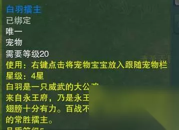 奇遇奖励宠物:白羽擂主