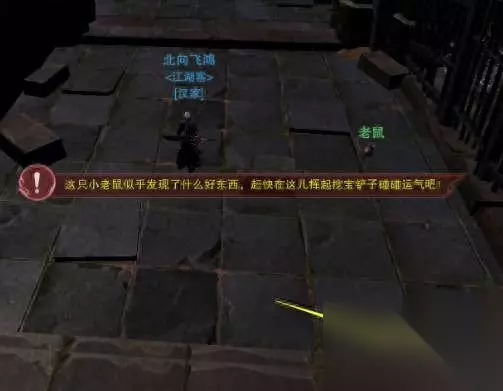 跟上老鼠一直到出现挖宝铲,及时到老鼠位置挖宝,随机获得:残铁钥匙、寒窗钥匙、缺玉钥匙,开启火云邪神牢门需要残铁钥匙。可以跟别人组队共享掉落拾取