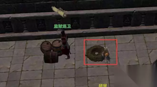 对话牢房中的监狱巡卫,他会推开那个桶让你从地道出去