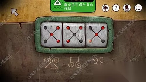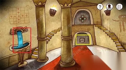 26、神庙一楼向上的楼梯上放红框这个门点击,进入小游戏。完成到下图即可解决开门,进入。26、1