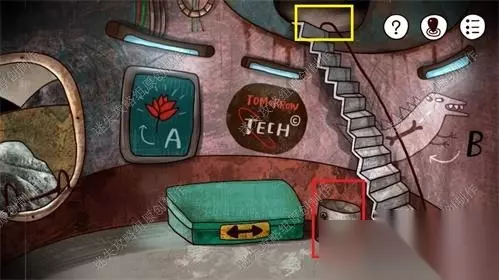 16、进入废弃火箭后,一楼楼梯下红框位置的铁桶先点击入手。然后黄框点击前往二楼。16