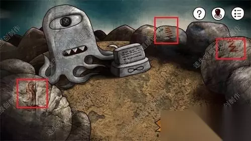 60、前往金字塔外左侧箭头的石雕处,黄框处点击直接获得铁钩,同时对石雕的红框部分使用黑色珠子。边上的石碑按需阅读剧情。60