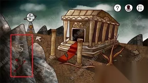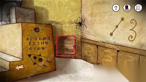 55、前往金字塔内部,点击红框部分,装入红色指针。依照之前在工厂电视机显示的线索,红色对应3、蓝色对应8、黄色对应7、绿色对应2.55、1、2