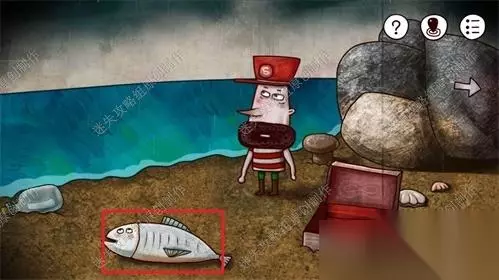 41、到海边,对地上红框的鱼使用之前在神庙密室得到的小刀,把鱼切晕,得到之前蓝帽大叔提起过的钥匙。41