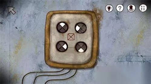 9、回到灯塔一楼,看到右侧墙面上两张画像,意思分别是四个按键的右下角下边点亮、四个按键的右上角左边点亮。点击中间红框的门右边的密码输入器,输入密码:左上为上边、右上为左边、左下为右边,右下为下边。开门,出灯塔。9、1
