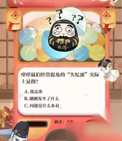3、痒痒鼠们经常提及的“失忆蛋”实际上是指? 答:我是谁