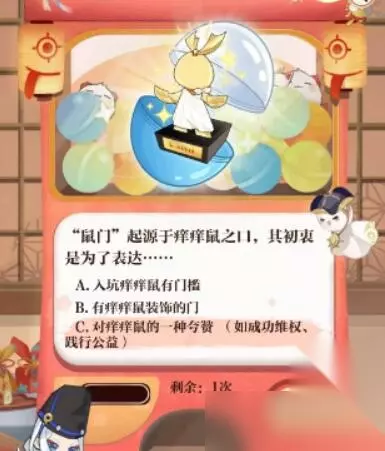 6、鼠门起源于痒痒鼠之口,其初衷是为了表达? 答:对痒痒鼠的一种夸赞(如成功维权、践行公益)