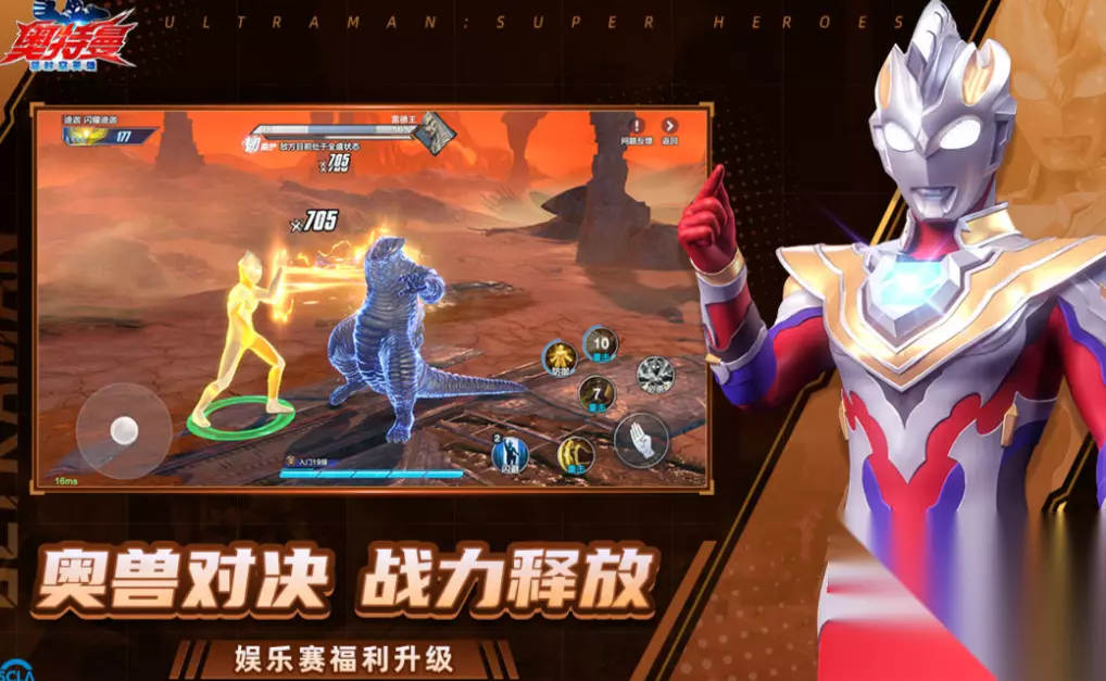 本作主打3D动作格斗+大世界探索玩法,是奥特曼IP中少有的高完成度动作向作品。迪迦、赛罗、泽塔等数十位奥特曼可供解锁与培养,每位角色具备差异化连招逻辑与终结技机制。场景尺度宏大,涵盖地球城市、异次元空间与深空战场,配合动态镜头与粒子特效,营造出电影级战斗氛围。赛罗的“赛罗双剑”与“赛罗集束射线”还原度极高,操作手感扎实。 扫码下载该游戏 高速下载 普通下载 优先233乐园APP下载 5、《奥特曼:超时空英雄》