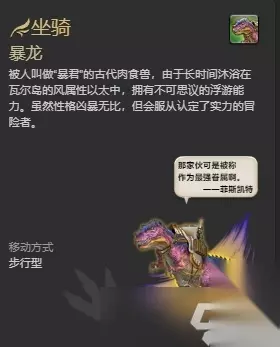 以下是ff14寻宝鉴定获得坐骑一览: 1.暴龙