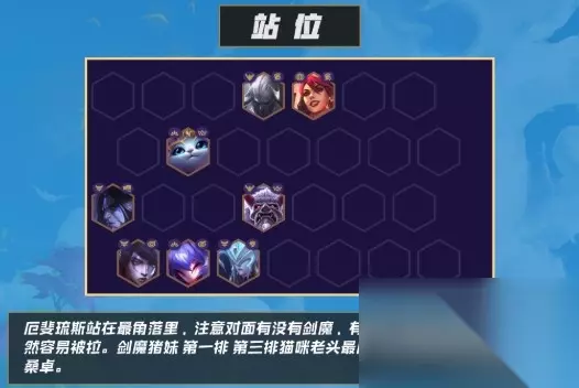 厄斐琉斯站在最角落里面,需要注意对面是否有剑魔,有剑魔就不要站在最里面了,容易被拉。 剑魔、猪妹第一排;第三排猫咪、老头;最后一排厄斐琉斯、千钰、丽桑卓。 以上就是小编整理《云顶之弈》S4赛季月神厄斐琉斯阵容的相关内容,想了解更多的相关资讯与攻略请关注233乐园手游网。