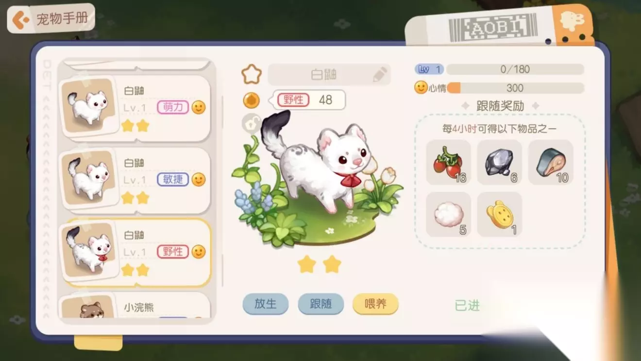 奥比岛上目前可以捕捉多种宠物,等级越高的宠物可以收获的材料越丰富,宠物不仅是奥比忠实的伙伴,还可以给我们带来作物的收益。 奥比岛手游宠物图鉴 一星级: 柴犬