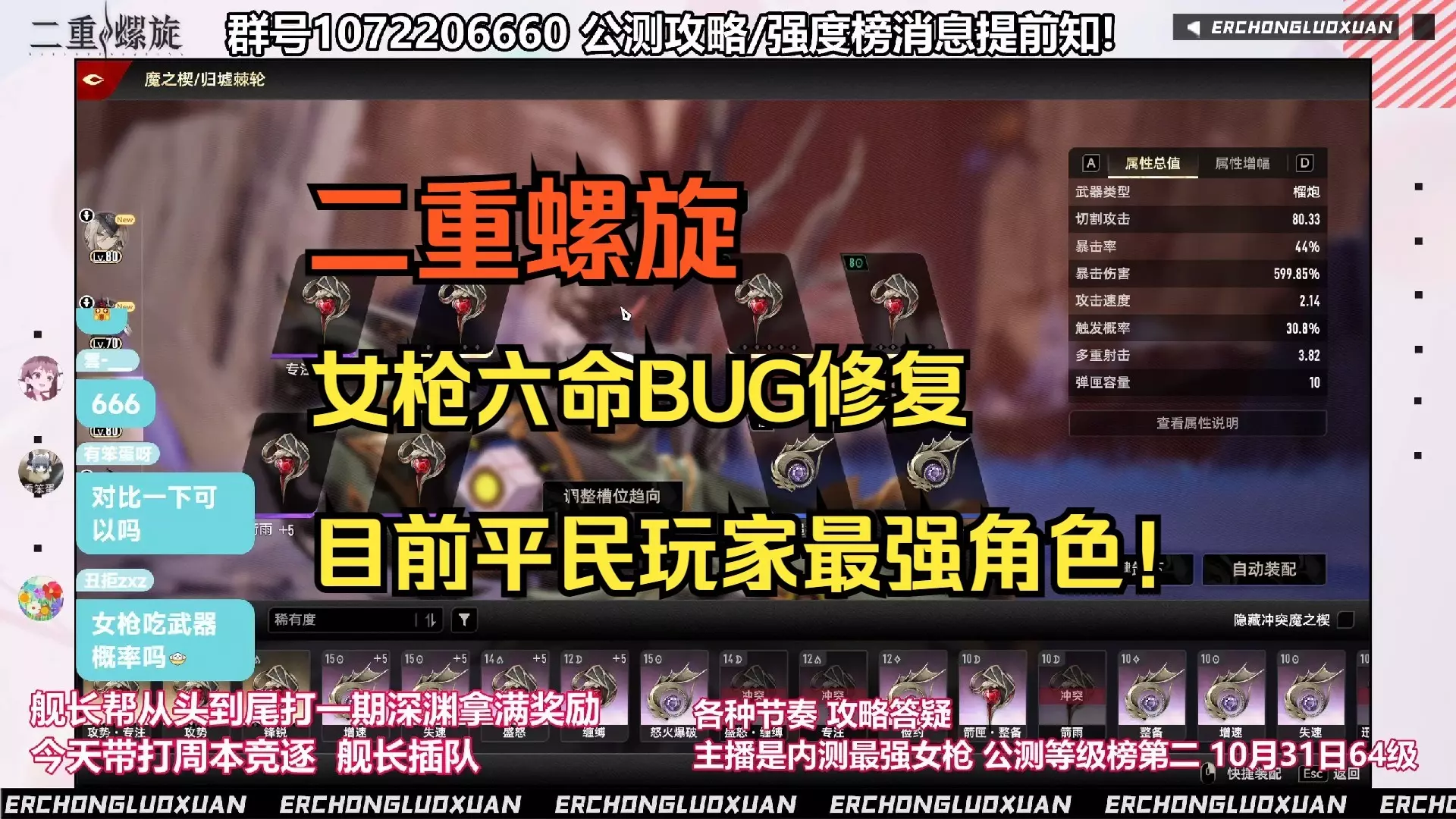 直播 【二重螺旋】女枪琳恩BUG修复,已无敌!目前平民玩家最强角色!附目前最强三个对单角色对比