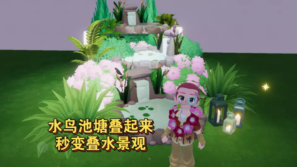 这是心动小镇中名为一枕清风的古风庭院造景,该庭院占地18块地块,能满足十级园艺爱好者的造景需求,古风庭院雅致清新,创作者十分期待拿到荷花建材后铺满水池的效果。
